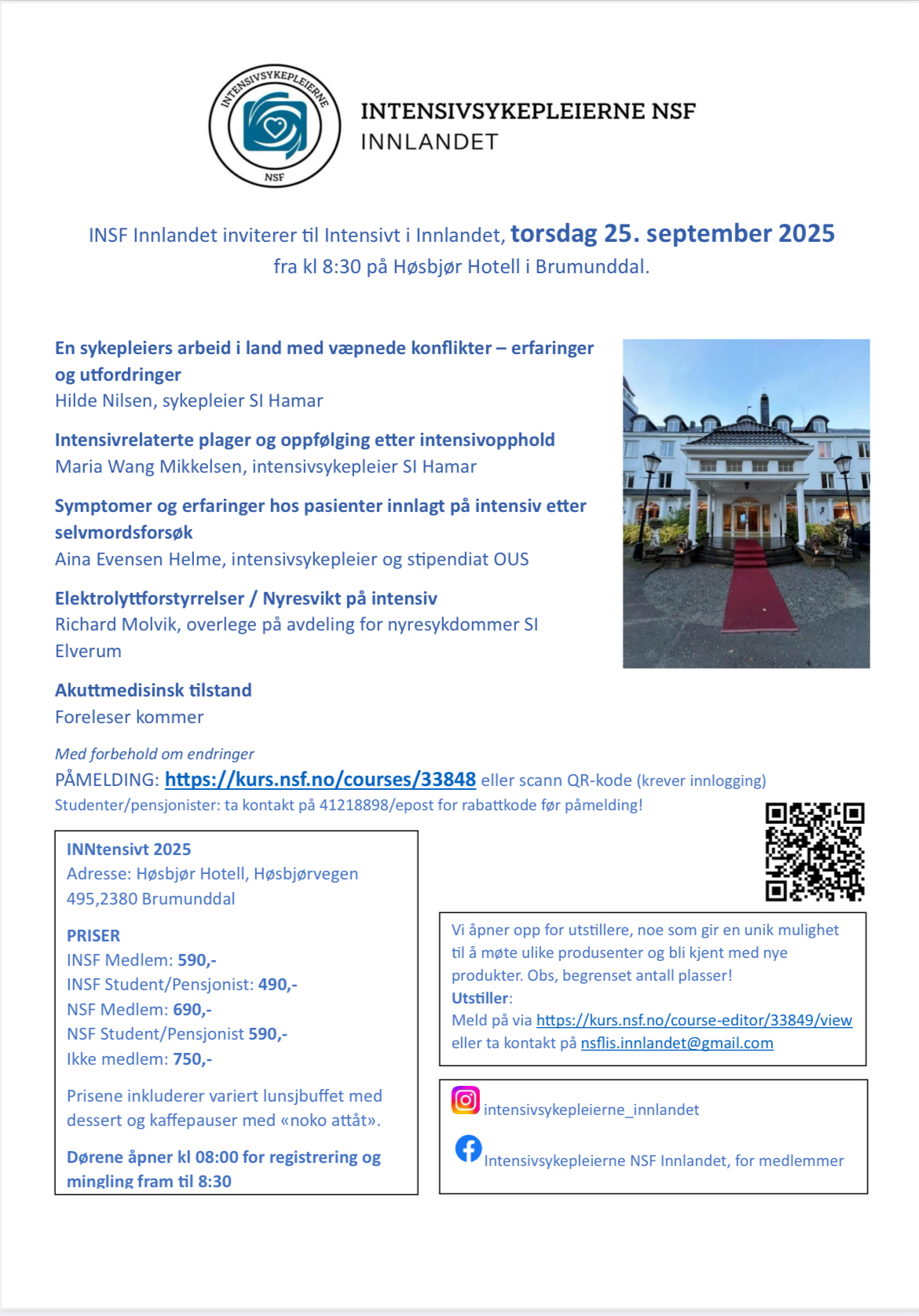 Kreftsykepleierne NSF, SpoR og Intensivsykepleierne NSF Telemark arrangerer fagdag.